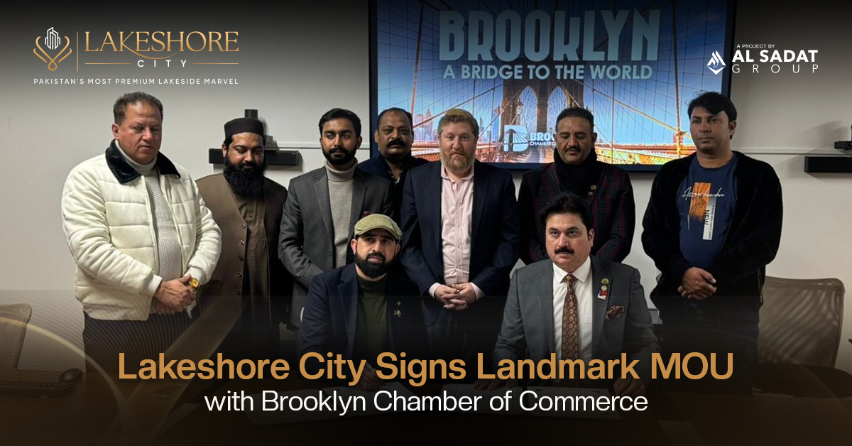 Lakeshore City, led by Syed Sadat Hussain Shah, has signed an important Memorandum of Understanding (MOU) with the Brooklyn Chamber of Commerce in the United States. This partnership is set to strengthen Pakistan-US trade, attract foreign investment, and create new economic opportunities for both countries.